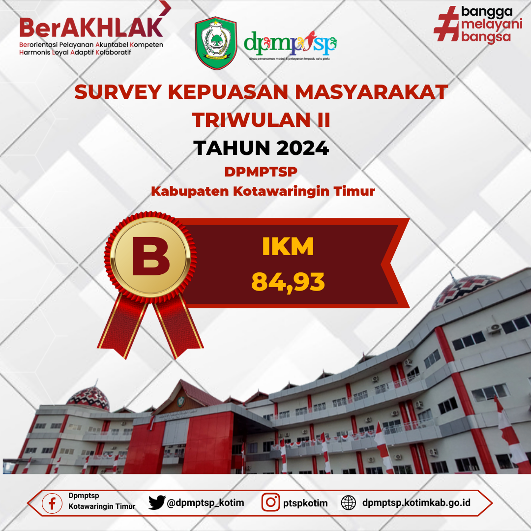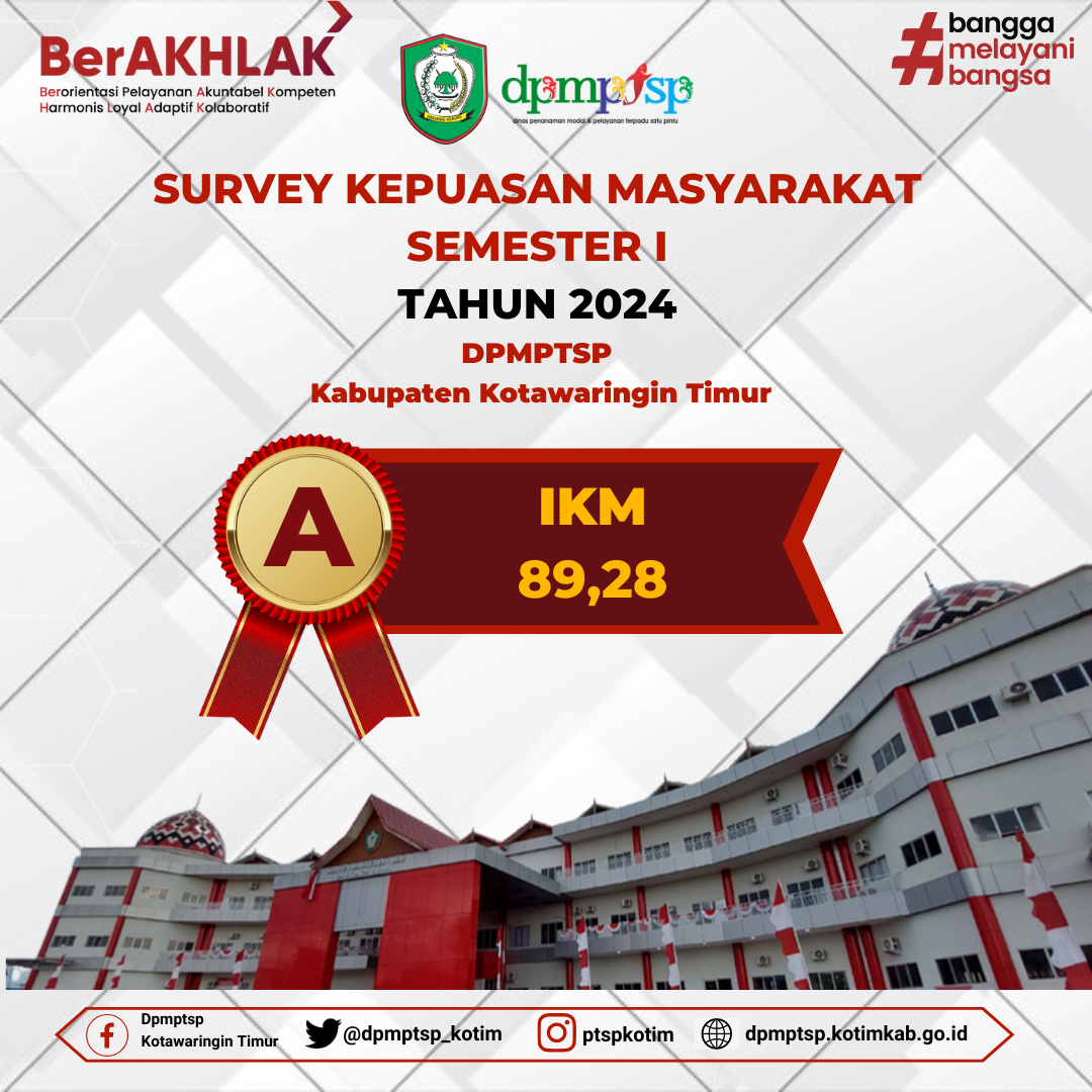 Hasil Survey Kepuasan Masyarakat (SKM) Semester I Tahun 2024 Dinas Penanaman Modal dan Pelayanan Terpadu Satu Pintu Kabupaten Kotawaringin Timur