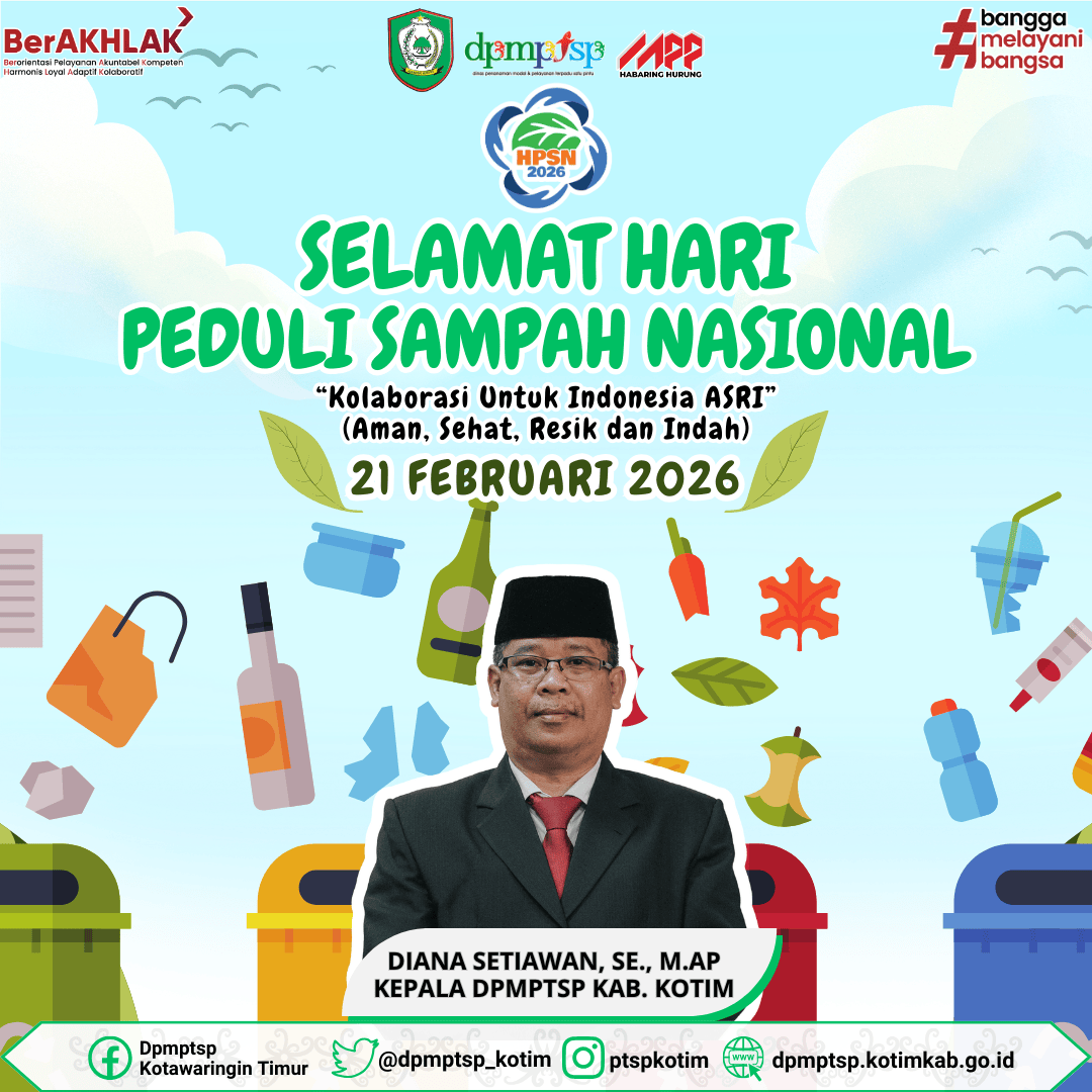 Jum’at, 20 Februari 2026. Dalam rangka memperingati Hari Peduli Sampah Nasional (HPSN) 2026, seluruh pegawai DPMPTSP Kab. Kotim menggelar kegiatan kerja bakti di halaman MPP Habaring Hurung. Kegiatan ini menjadi wujud nyata kepedulian terhadap...