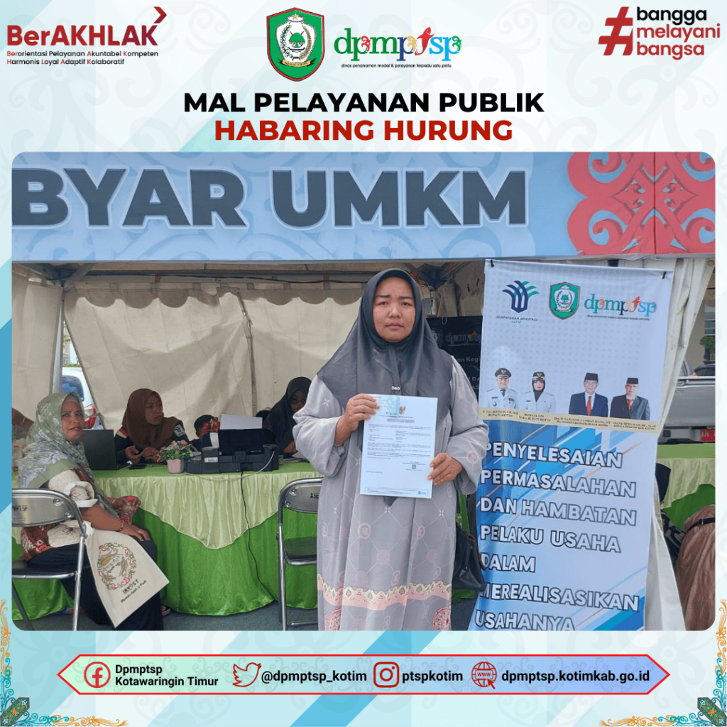Dinas Penanaman Modal dan Pelayanan Terpadu Satu Pintu Kabupaten Kotawaringin Timur juga turut berpartisipasi memeriahkan Gebyar UMKM ini dengan membuka stand pelayanan OSS, melayani pembuatan Nomor Induk Berusaha. Para Pengunjung dan Peserta pada Gebyar UMKM begitu berantusias untuk mendaftarkan usahanya pada aplikasi Online Single Submission (OSS) RBA agar usaha mereka memiliki NIB sebagai legalitas kegiatan usahanya.
